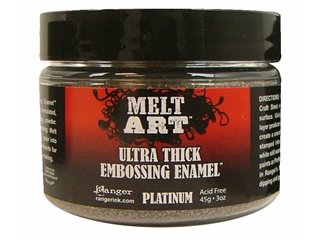 , Ranger Melt Art makes it safe and easy to melt, dip and pour Ultra Thick Embossing Enamels, embossing powders, soap, candle wax, glue, candy and more! Make 3-D embellishments for jewelry, paper crafting, fiber arts and home decor. Ultra-Thick Emboss Enamel UTEE Platinum 3oz- This is a specially formulated, large particle embossing powder. Use a heat tool for embossing. Melt in Ranger's Melting Pot , pour into molds to create embellishments for craft projects and jewelry-making. Non-toxic, Not for use by children.