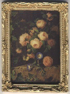 Dollhouse Miniature Artisan Framed Famous Floral Painting designed for the 1:12 scale miniature setting. This beautiful frame is made of painted resin. It is by Town Square Miniatures. The artwork is a matt photo paper print permanently affixed to the inside of the frame. Measures: 3 in tall x 2 1/16 in wide