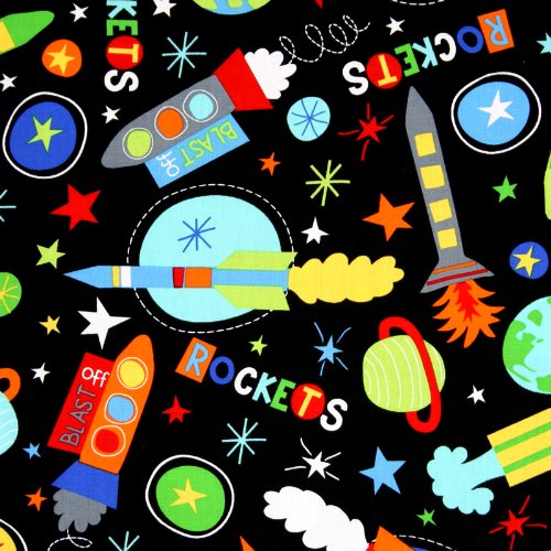 Here are some of the great features of Robert Kaufman Launch Rockets Black Fabric Yardage