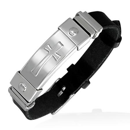 Here are some of the great features of PVC Leather Stainless Steel Maltese Cross Watch-Style Mens Bracelet