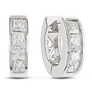 A must have for any collection! These super small huggie hoops are channel set with sparkling white CZ's. They have a rhodium plate finish (anti-tarnish) with hinged backs and posts for pierced ears. Crafted of sterling silver, they are very small (1/2" around) and would be good for young girls as well as ladies looking for something subtle and elegant. Hinged with Posts for Pierced Ears, Rhodium Plate Finish. Read more customer reviews ...